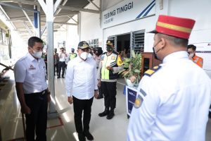 Kapolda Sumut dan rombongan mengawali peninjauan di stasiun kereta api Tebing Tinggi dilanjutkan menuju stasiun kereta api Kisaran dengan menggunakan lokomotif KA Kaldera Toba No. SI 31101