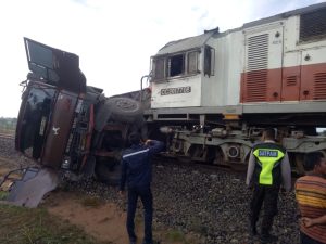 Diduga Kurang Hati-hati ! Dump Truk Angkut Pasir Galian Dihantam KA, Sopir Truk Kabur