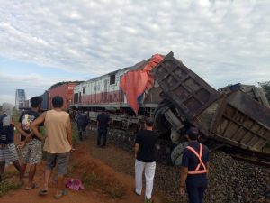 “Truk pengangkut pasir galian iti datang dari arah jalan benteng sungai ular menuju arah Jalinsum Medan – Tebing Tinggi setibanya di TKP diduga kurang hati hati dan tidak memperhatikan kereta api Barang kontainer No KA. 2842 dengan masinis Hery Handoyo yang datang dari arah Medan menuju arah Tebing Tinggi sehingga terjadi tabrakan tersebut ,”paparnya.