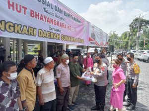 Terkamnews.com||Dalam rangka menyambut Hari Bhayangkara Ke-76 Tahun 2022, Polda Sumatera Utara bersama Polsek Medan Baru menggelar kegiatan bantuan Sosial dan Bakti Sosial di Mesjid Al Jihad Jalan Abdullah Lubis Kel Babura Kec Medan Baru, Kamis (23/6/2022).