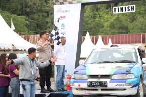 Terkamnews.com-SIMALUNGUN || Dirlantas Polda Sumut Kombes Pol Indra Darmawan Irianto, SIK, M.Sc, dengan didampingi oleh Kapolres Simalungun AKBP Ronald F.C Sipayung, S.H., S.I.K., M.H., menghadiri Penutupan (Closing Ceremonial) Even Danau Toba Rally 2022 Kejuaraan Nasional Putaran Pertama Dengan Ceremonial Pengibaran Bendera Finis Rally Danau Toba 2022 di Terminal Sosor Sabah Parapat Kecamatan Girsang Sipangan Bolon, Kabupaten Simalungun, Sumut, Minggu (7/8/2022) sore sekira pukul 16.00 WIB.