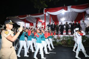 Terkamnews.com||Dalam rangka memperingati HUT RI ke 77 tahun 2022, ratusan peserta yang terdiri dari pelajar, personil TNI-Polri, Aparatur Sipil Negara (ASN) dari sejumlah instansi mengikuti upacara Taptu yang digelar di didepan kantor Gubernur Sumatera Utara, Selasa (16/8/2022) sekira pukul 20.00 wib