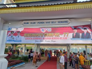 Terkamnews.com,.|| -Deli Serdang Kapolresta Deli Serdang Kombes Pol. Irsan Sinuhaji SIK, MH menghadiri Upacara Hari Guru Nasional ke 77 Tahun 2022 Provinsi Sumatera Utara yang dilaksanakan di Alun-Alun Pemkab Deli Serdang, Sabtu (26/11/2022) pagi.