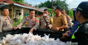 Pada kegiatan tersebut, Kapolresta Deli Serdang memberikan bantuan berupa sembako dan membagikan Paket Nasi bungkus kepada masyarakat yang terdampak banjir.