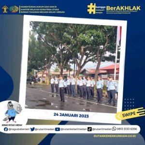 Terkamnews.com||Medan- Pasca libur cuti bersama Tahun Baru Imlek 2023, Kepala Rutan Kelas I Medan Nimrot Sihotang Pimpin Apel Pagi di Lapangan Rutan Kelas I Medan, Selasa (23/01/2023).