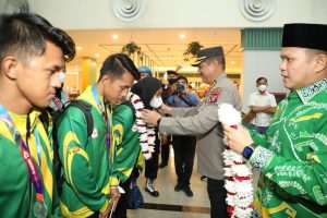 “Saya mewakili Bapak Kapolda Sumut menyambut kepulangan adik-adik kita tergabung dalam Kontingen Porseni PWNU Sumut dari Solo,” ujar Irwasda Polda Sumut, Kombes Pol Armia Fahmi.