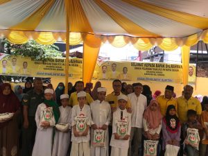 “Kita memberikan tali asih berupa sembako kepada kaum duafa, anak yatim dan santri. Semoga bisa menjadi berkah,”paparnya.