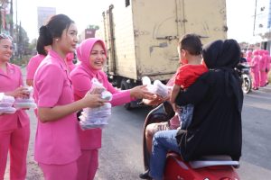Pengurus Bhayangkari Cabang Sergai Bagi Takzil Kepada Pengendara Bermotor