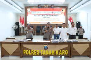 Dalam konferensi pers tersebut, Kapolres Tanah Karo didampingi Waka Kompol Aron Siahaan, S.H dan Kasat Reskrim AKP Aryya Nusa Hindrawan, S.I.K, yang dilaksanakan di Aula Pur Pur Sage Mapolres Tanah Karo, Senin(03/04/2023) pukul 16.00 WIB.