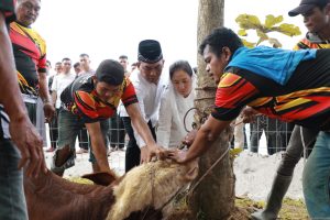 “Semoga di Hari Raya Idul Adha 1444 H ini kita menjadi insan yang penuh keikhlasan dan bersyukur atas nikmat Tuhan Yang Maha Esa, serta Hewan Kurban yang didistribusikan maupun yang disembelih dapat bermanfaat bagi kita semuanya,” pungkasnya.
