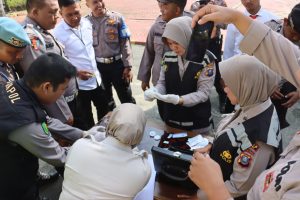 Terkamnews.com||Langkat – Polres Langkat menggelar tes urine secara mendadak terhadap 21 personel di depan Lapangan Jananuraga Polres Langkat, Senin (07/08/2023).