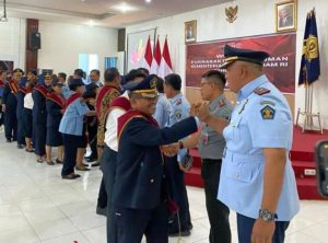 Terkamnews.com||MEDAN – Rutan Kelas I Medan Kanwil Kemenkumham Sumut ikuti Prosesi Wisuda Purnabakti di wakili oleh Purnabakti an: Jeksiner Saragih yang di hadiri juga oleh Kepala Rutan, Kepala Kantor Wilayah Kementerian Hukum dan HAM Sumatera Utara, Imam Suyudi melepas 25 orang Pegawai Jajaran yang memasuki masa Purnabakti bertempat di Aula Soepomo bersamaan dengan seluruh Satuan Kerja di Lingkungan Kementerian Hukum dan HAM di laksanakan secara Hybrid yang terpusat dari Graha Pengayoman, Senin (07/08/2023).