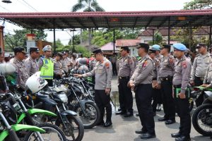 Kapolresta Deli Serdang Pimpin Pengecekan Kendaraan Dinas Dan Perlengkapan Dalmas Jelang Pemilu