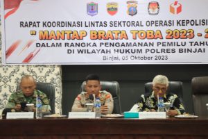 Terkamnews.com||Binjai – Menjelang pelaksanaan pesta demokrasi bagi bangsa Indonesia, polres binjai melaksanakan rapat koordinasi lintas sektoral operasi kepolisian terpusat dengan sandi *”MANTAP BRATA TOBA 2023-2024″* dalam rangka melaksanakan pengamanan pemilu tahun 2024 dengan damai di wilayah hukum polres binjai,