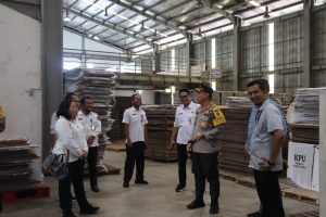 “Pengecekan dilakukan untuk memastikan tidak ada permasalahan atau gangguan yang dapat mempengaruhi proses penyimpanan dan distribusi logistik Pemilu 2024”, ucapnya.