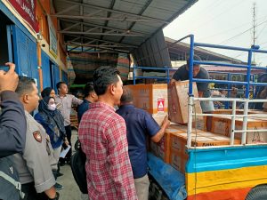 Penerimaan Logistik Pemilu berupa Kotak Suara dan Tinta Pemilu di saksikan dan dihadiri, Ketua KPU Kab. Langkat Bapak Sopian Sitepu, S. Sos.