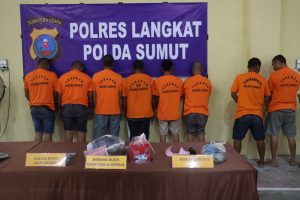 Kapolres Langkat, AKBP Faisal Rahmat Husein Simatupang saat menggelar press release di Polres Langkat mengatakan, keenam pelaku diamankan polisi dilokasi yang berbeda-beda.