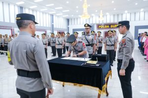 “Perlu saya sampaikan kedepannya Polda Sumut akan dihadapkan berbagai agenda pengamanan diantaranya Perayaan Natal dan Tahun Baru 2024, Pemilu 2024 serta berbagai agenda nasional maupun internasional. Oleh karena itu kepada para pejabat baru dilantik ini dapat mempersiapkan diri,” pungkasnya.