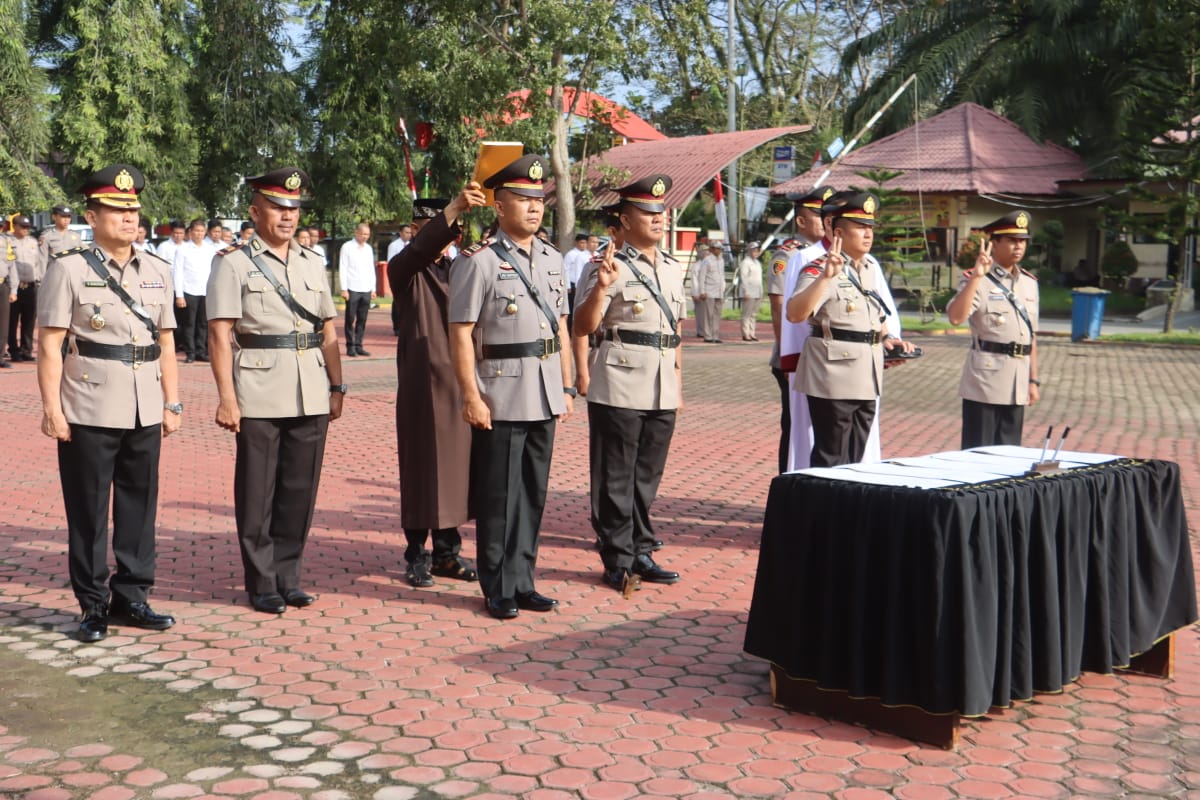 Kapolres Langkat Pimpin Upacara Sertijab, Kabag Log, Kasat Dan Kapolsek