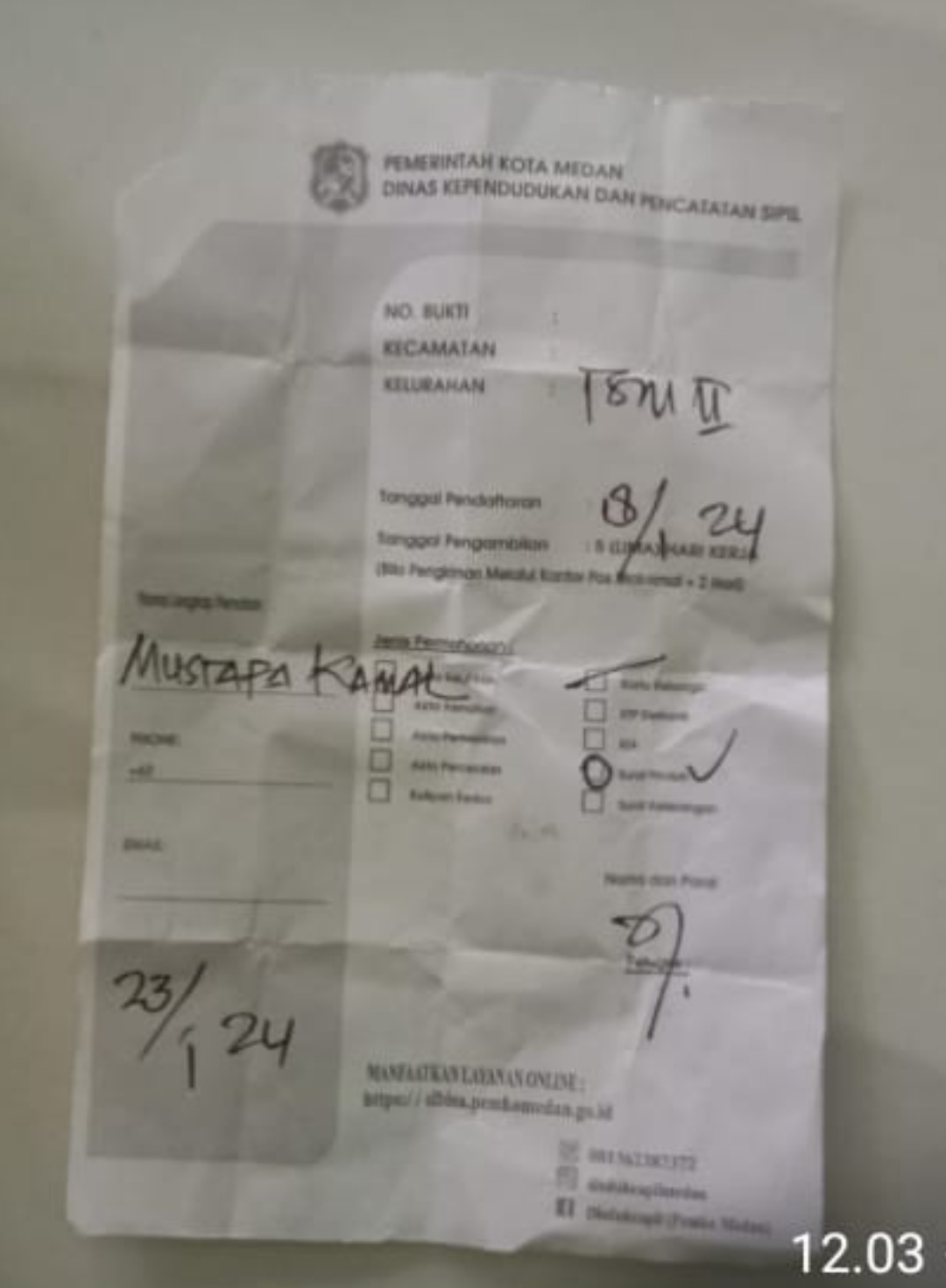 Pada ( 24/01/2024) Pukul 18:00 Wib Sore Warga Fitri (50) Menyampaikan Pesan Whatsapp kepada terkamnews.com bahwasanya ia dihubungi petugas disdukcapil yang dikelurahan Tegal Sari Mandala II.