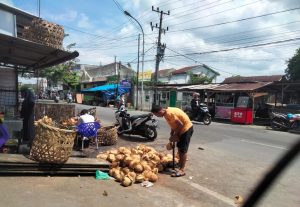 Pengusaha Parut Kelapa Membandal Tetap Menggunakan Trotoar Dan Badan Jalan Untuk Usahanya “Diduga” Miliki Senjata Api (SENPI)