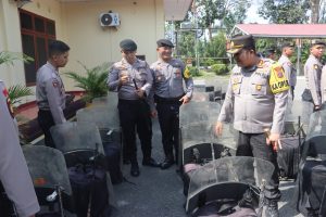 Menjelang Tahapan Pungut Suara Pemilu 2024, Kapolres Langkat Cek Kesiapan Kendaraan Dinas Dan Personel Dalmas