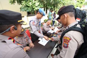 “Kenapa rekan-rekan harus menggunakan perlengkapan baik kopel, ransel dan baton, untuk mempermudah rekan-rekan dalam pelaksaan tugas, namun untuk senjata tidak diperbolehkan,” ujarnya.