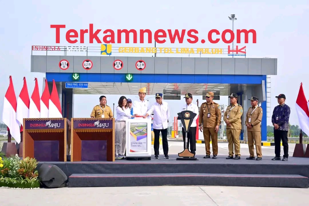 Terkamnews.com || -T. Tinggi Pejabat (Pj.) Wali Kota Tebing Tinggi Drs. Syarmadani, M.Si mendampingi Presiden Republik Indonesia (RI) Ir. H. Joko Widodo meresmikan dua ruas jalan tol Trans Sumatera yakni jalan tol ruas Kuala Tanjung-Tebing Tinggi-Parapat seksi Tebing Tinggi-Indrapura dan jalan tol ruas Indrapura-Kisaran seksi Indrapura-Limapuluh di Gerbang Tol Limapuluh, Kabupaten Batubara, Provinsi Sumatra Utara,”Rabu (07/02/2024).