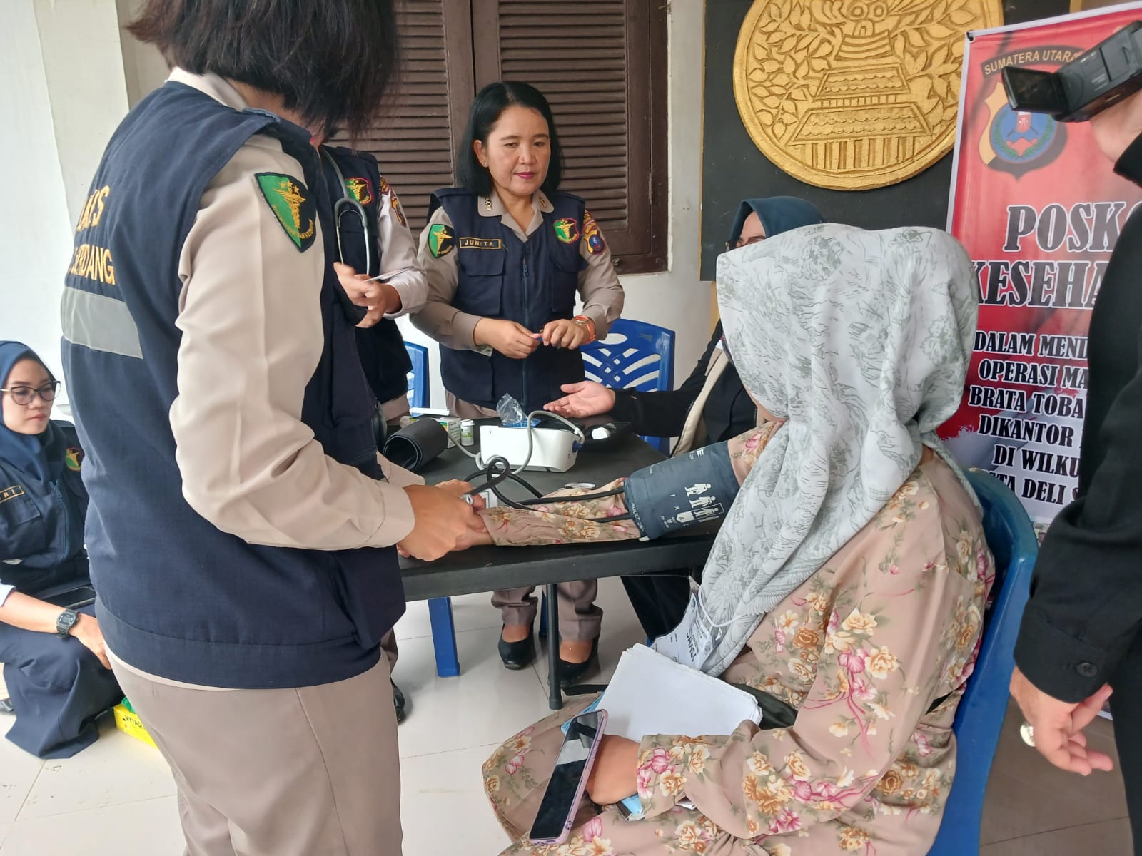 Bertempat di Kantor PPK Lubuk Pakam, Tim Kesehatan Polda Sumut melakukan pemeriksaan kesehatan bagi personel yang melaksanakan pengamanan pemilu.