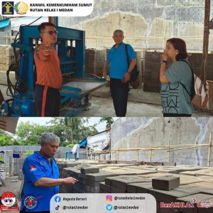 Sambil berkordinasi tentang hal-hal yang perlu di sampaikan , Karutan mengajak Parlindungan dan jajaran untuk mengunjungi tempat pembuatan paving block yang menjadi inovasi Rutan Klas I Medan , melihat langsung proses pembuatan dan mencoba kualitas paving block yang di produksi.
