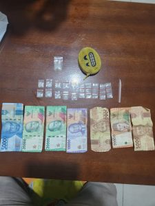 Uang tunai sebesar Rp. 115.000, terdiri dari 1 (satu) lembar uang pecahan Rp. 50.000, 2 (dua) lembar uang pecahan Rp. 20.000, 1 (satu) lembar uang pecahan Rp. 10.000, 3 (tiga) lembar uang pecahan Rp. 5.000. Barang-barang tersebut ditemukan di dalam dompet warna kuning yang berada di bawah bangku tempat pelaku duduk. Pelaku mengakui bahwa barang bukti narkotika jenis sabu-sabu tersebut memang untuk dijual.
