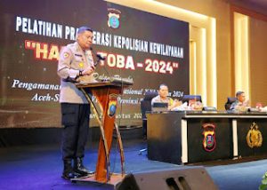 Terkamnews.com||SERGAI – Kepolisian Resor Serdang Bedagai (Polres Sergai) turut serta mengikuti pelatihan (Lat Pra Ops) “Hatra Toba-2024” dalam rangka pengamanan Pekan Olahraga Nasional (PON) XXI 2024 Aceh-Sumut, di Tiara Convention Center, Rabu (21/08/2024).