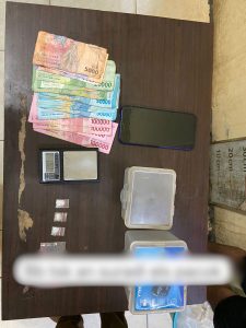 Dalam penangkapan tersebut, petugas berhasil mengamankan barang bukti berupa tiga bungkus plastik klip bening yang diduga berisi narkotika jenis sabu dengan berat bruto 0,56 gram, satu buah timbangan elektrik, satu buah ponsel Android merek Redmi, uang tunai sebesar Rp.980.000, dua buah kotak senter plastik, satu bungkus plastik klip bening, dan satu bungkus plastik klip bening kosong.