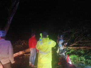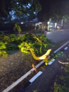 Terkamnews.com||Langkat – Derasnya hujan dan angin kencang mengakibatkan pohon tumbang jalan Proklamasi Stabat tumbang menimpah kabel listrik PLN dan melintang di badan jalan Proklamasi desa Pantai Gemi Kecamatan Stabat Kabupaten Langkat pada hari Minggu (08/09/2023) pukul 19.00 Wib.