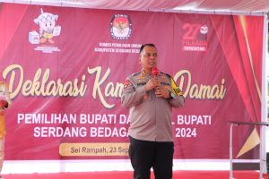 Kata sambutan Kapolres Serdang Bedagai, Polres Serdang Bedagai sebagai penanggung jawab pengamanan Pilkada serentak 2024 di Kab. Serdang Bedagai siap melaksanakan pengamanan disetiap tahapan Pilkada.
