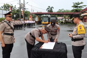 “Dalam menghadapi tantangan tugas Polri kedepan, perlu adanya penyegaran anggota. Sehingga nantinya seluruh anggota siap menghadapi segala tantangan. Selain untuk penyegaran ditubuh kesatuan, mutasi anggota dilakukan untuk peningkatan karir personil yang bersangkutan,”Ujar Kapolresta.