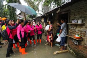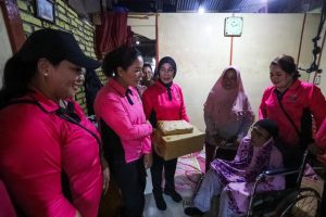 “Bapak ibu, kami tahu situasi ini berat. Kami di sini untuk membantu. Tetap kuat, ya,”ujar Ny Whisnu menyemangati warga.