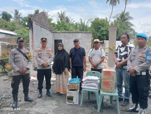 Kapolsek Teluk mengkudu AKP Sugiono memberikan Bantuan Kepada keluarga Korban Kebakaran Rumah, berupa Beras, telur, minyak makan, indomie dan ricecooker.