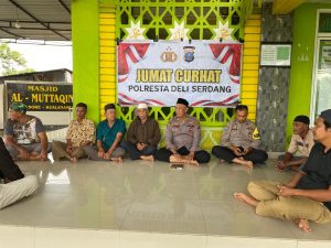 Terkamnews.com||Deli Serdang – Polresta Deli Serdang menggelar Jumat Curhat bersama masyarakat yang dilaksanakan di Masjid Al-Mutaqin Desa Pasar V Kebun Kelapa Kecamatan Beringin Kabupaten Deli Serdang, Jumat (11/10/2024).