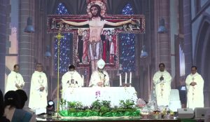 Sebelumnya Acara ini dimulai dengan ibadah Ekaristi, yang dipimpin langsung Uskup Mgr. Cornelius Sipayung, OFMCap., didampingi bersama 6 Pastor termasuk salah satunya Pastor Paroki SMART (Santa Maria Ratu Rosari Tanjung Selamat) Medan Pastor Aaron Taogo’aro Waruwu, OSC