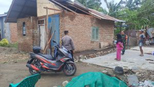Bhabinkamtibmas Polsek Stabat dan Babinsa Tinjau Rumah Warga Yang Rusak Akibat Angin Kencang dan Hujan Deras