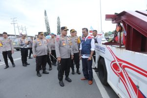 Irjen Pol Whisnu, didampingi Karo Ops Polda Sumut Kombes Pol Togi Tambunan dan Kabid Humas Polda Sumut Kombes Pol Hadi Wahyudi, mengecek langsung berbagai fasilitas di Pos Pelayanan, termasuk mobil derek gratis, ambulans, dan pemadam kebakaran yang disiagakan 24 jam. “Seluruh personel sudah siap memberikan pelayanan maksimal bagi masyarakat yang melintasi Tol Sinaksak,” ujar Kapolda.