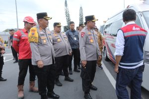Terkamnews.com||SIMALUNGUN – Kapolda Sumatera Utara, Irjen Pol Whisnu Hermawan Februanto, meninjau kesiapan Pos Pelayanan Natal dan Tahun Baru (Nataru) di pintu masuk Tol Sinaksak, Kabupaten Simalungun, Senin (23/12). Kunjungan ini dilakukan untuk memastikan kesiapan personel dan fasilitas dalam mendukung kelancaran arus mudik.