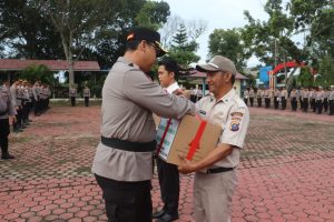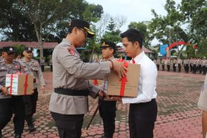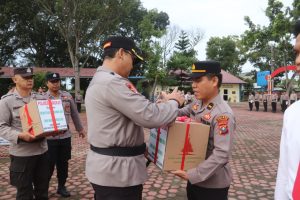 Terkamnews.com||Langkat – Kapolres Langkat, AKBP David Triyo Prasojo, SH, SIK, MSi, menyerahkan bingkisan Natal secara simbolis kepada ASN dan personel beragama Kristen di Lapangan Apel Jananuraga Polres Langkat, Senin (16/12/2024).