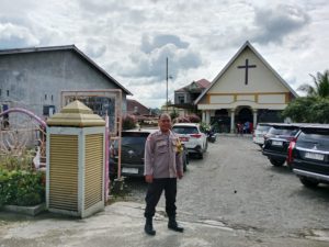 Pengamanan rumah ibadah seperti Gereja ini melibatkan Personel Polres Langkat yang terlibat dalam Operasi Lilin Toba 2024 dengan meliputi kegiatan pengaturan arus lalu lintas, pemeriksaan barang bawaan, serta patroli dialogis di sekitar area gereja.