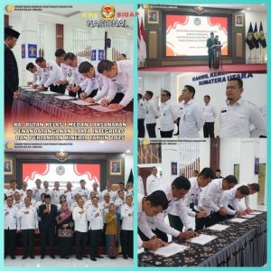 Terkamnews.com||Medan – Kepala Rumah Tahanan Negara Kelas I Medan Kantor Wilayah Ditjenpas Sumatera Utara, Alanta Imanuel Ketaren laksanakan Penandatangan Pakta Integritas dan Perjanjian Kinerja di lingkungan Kantor Wilayah Direktorat Jenderal Pemasyarakatan Sumatera Utara. Senin, (20/01/2025).