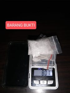 Tim pun melakukan pengembangan kerumah Tersangka. Dan di dampingi warga dan istri pelaku untuk melakukan penggeledahan di rumahnya. Didalam pemeriksaan Tim menemukan di dapur rumahnya di dalam sepatu berupa 1 ( satu) bungkus kotak rokok dunhill yang didalamnya berisikan 2 ( dua) bungkus plastik bening yang diduga berisikan narkotika jenis sabu berat keseluruhan brutto 8,01 (delapan koma nol satu ) gram.