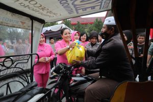“Terima kasih paketnya, Bu. Semoga selalu dilimpahkan rezeki, dimudahkan segala urusannya, dan selalu dalam lindungan Allah SWT. Aamiin,” ujar seorang ibu sambil tersenyum bahagia kepada Ketua Bhayangkari Sumut.