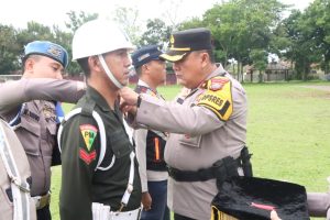Waka Polres Binjai Kompol RD. Firman D., S.H., M.H., selaku pimpinan apel gelar pasukan operasi Ketupat Toba 2025, membacakan amanat bapak Kapolda Sumut sebagai berikut :