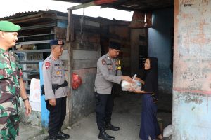 Kegiatan berbagi berkah SINERGITAS TNI-POLRI dibulan suci ramadhan ini berlangsung di Jl. Turi Gg. Salim, Kelurahan Timbang Deli, Kecamatan Medan Amplas. Paket sembako seperti beras, mie instan, telur ayam, minyak goreng, gula pasir, dan teh dibagikan kepada warga yang membutuhkan.
